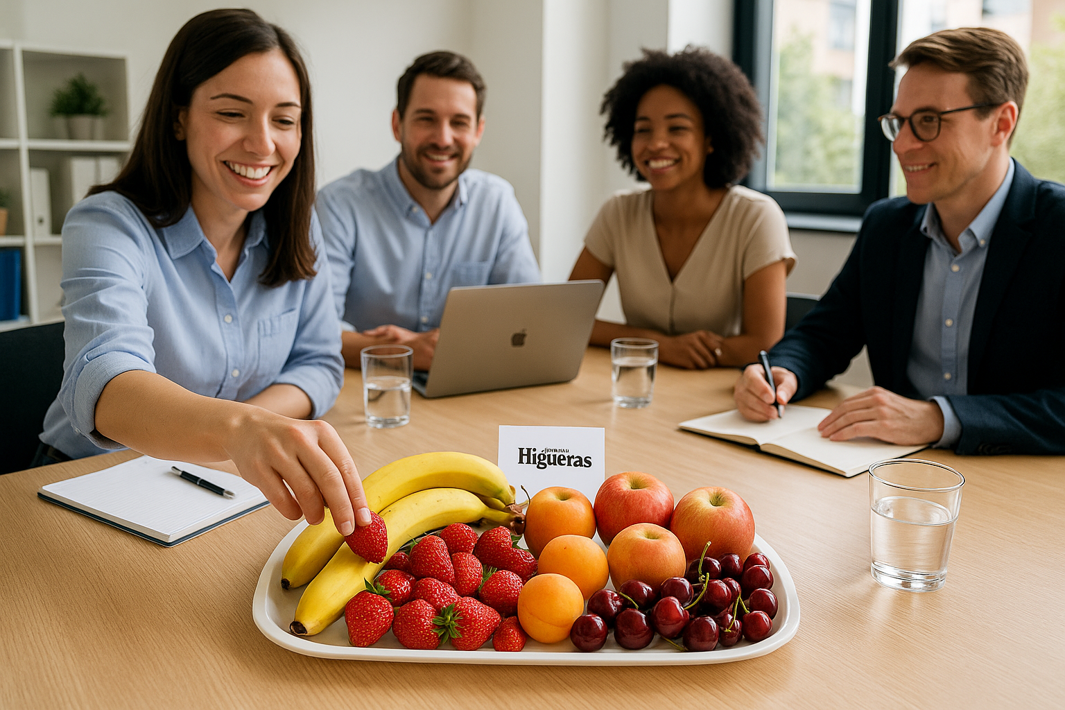 A la feina, moltes de les decisions importants es prenen al voltant d’una taula. Però, i si aquestes taules estiguessin plenes de fruita fresca en comptes de brioixeria i cafès ràpids? A Fruites Higueras creiem que esmorzar amb fruita i fer reunions amb fruita al centre no només millora la salut, sinó també l’ambient laboral.