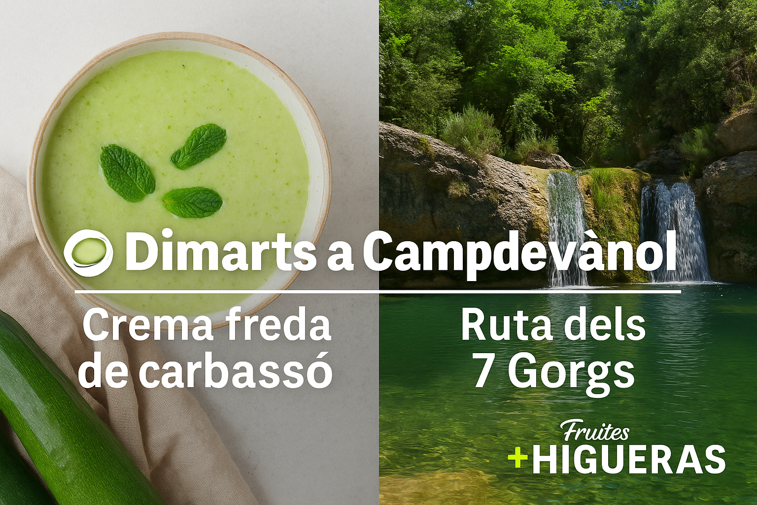- Crema freda de carbassó amb topping de poma Higueras tallada fina.